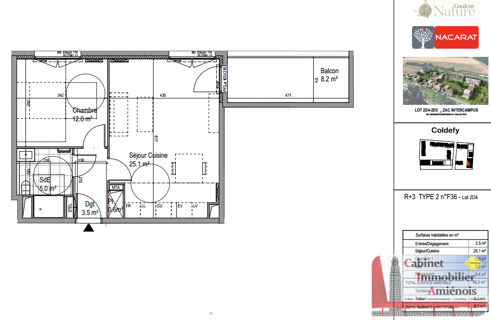 Amiens Sud, Résidence Couleur Nature : appartement 46 m² + 1 chambre + 1 balcon 8 m² + 2 parkings